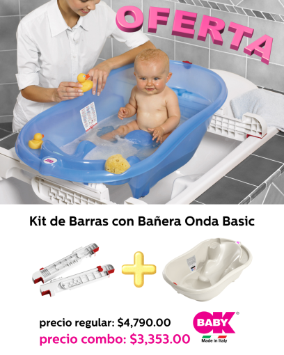 La Bañera Onda Basic con barras de soporte OKBABY es muy cómoda para el bebé y para los padres también, por lo segura que resulta. Cuenta con gran espacio y asientos ergonómicos para colocar al bebé según su edad. Los asientos están recubiertos de un material antideslizante.